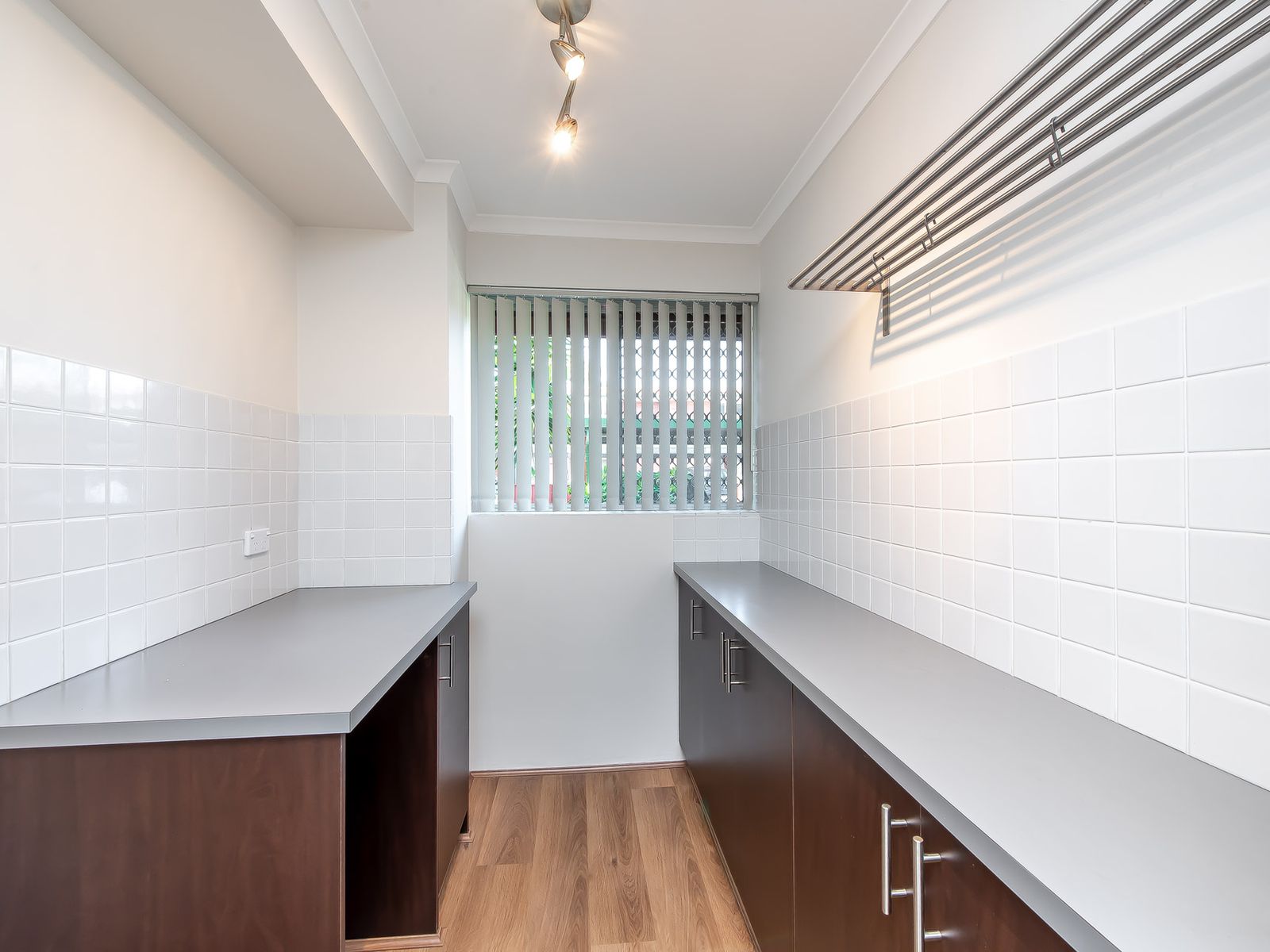 -Laundry located off the kitchen area with built-in cupboards