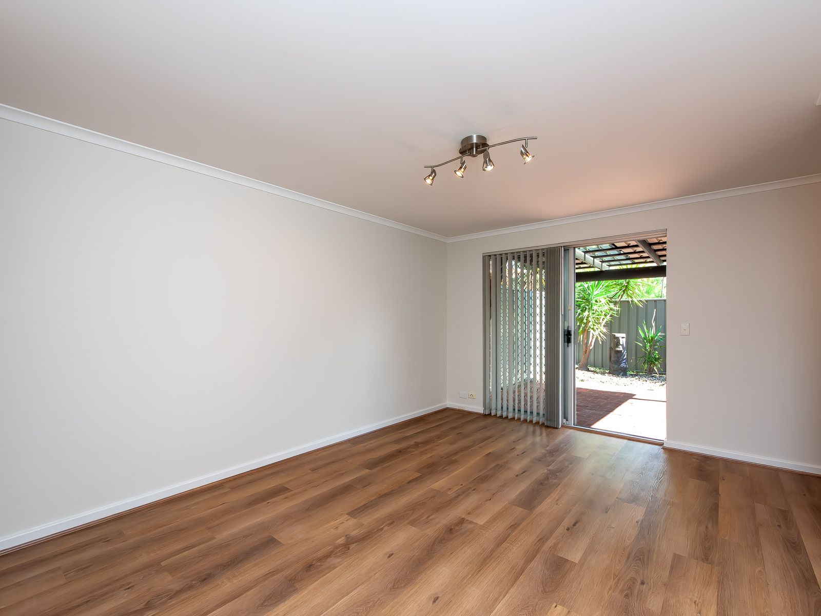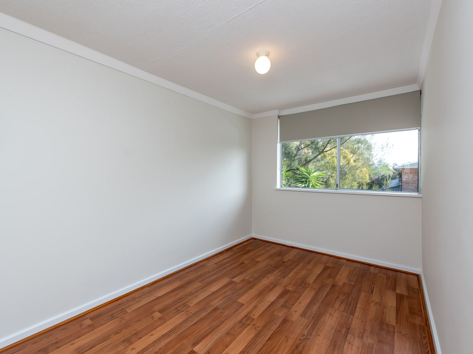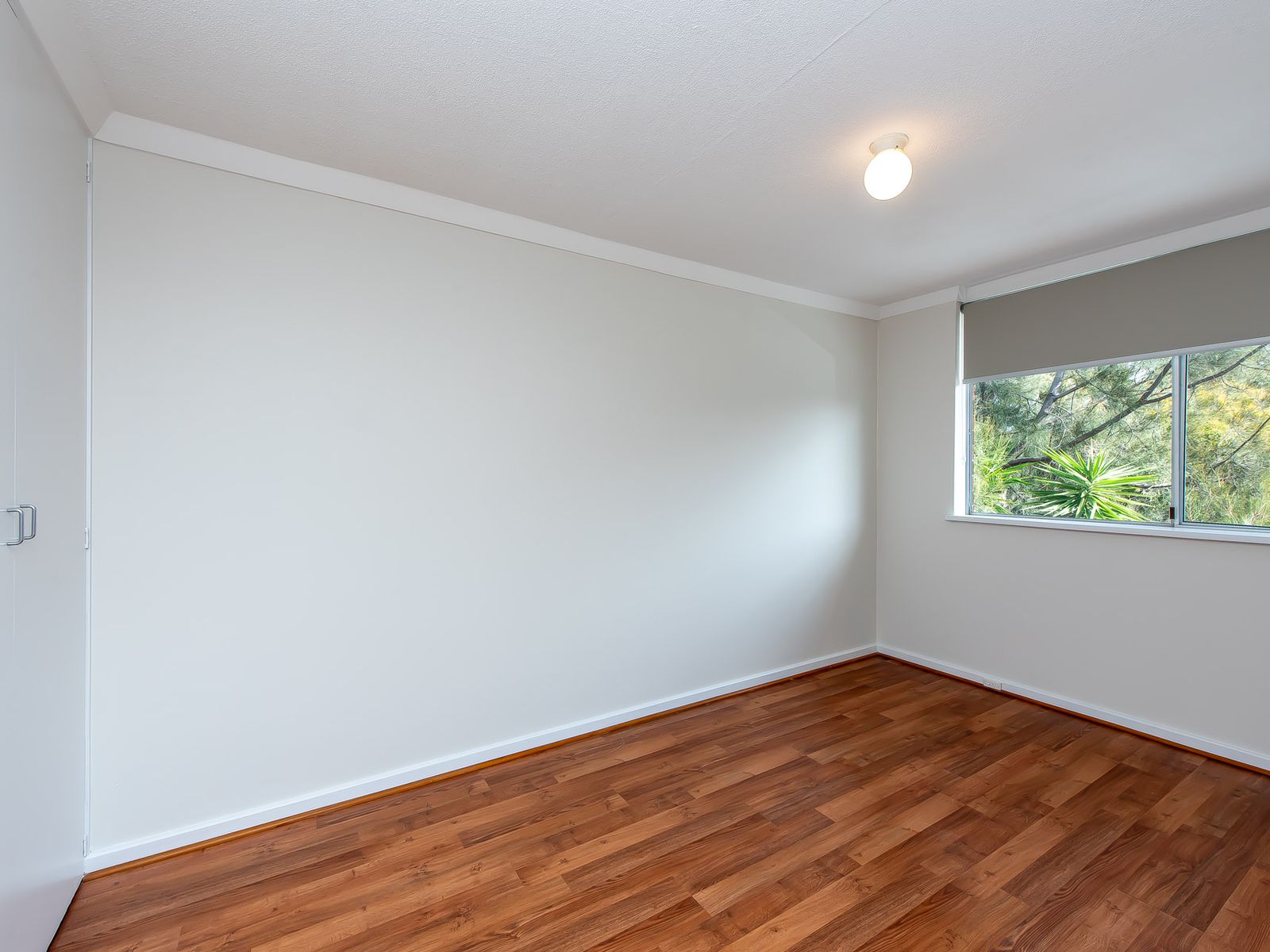 -Spacious master bedroom with built-in robe & stylish laminated flooring.