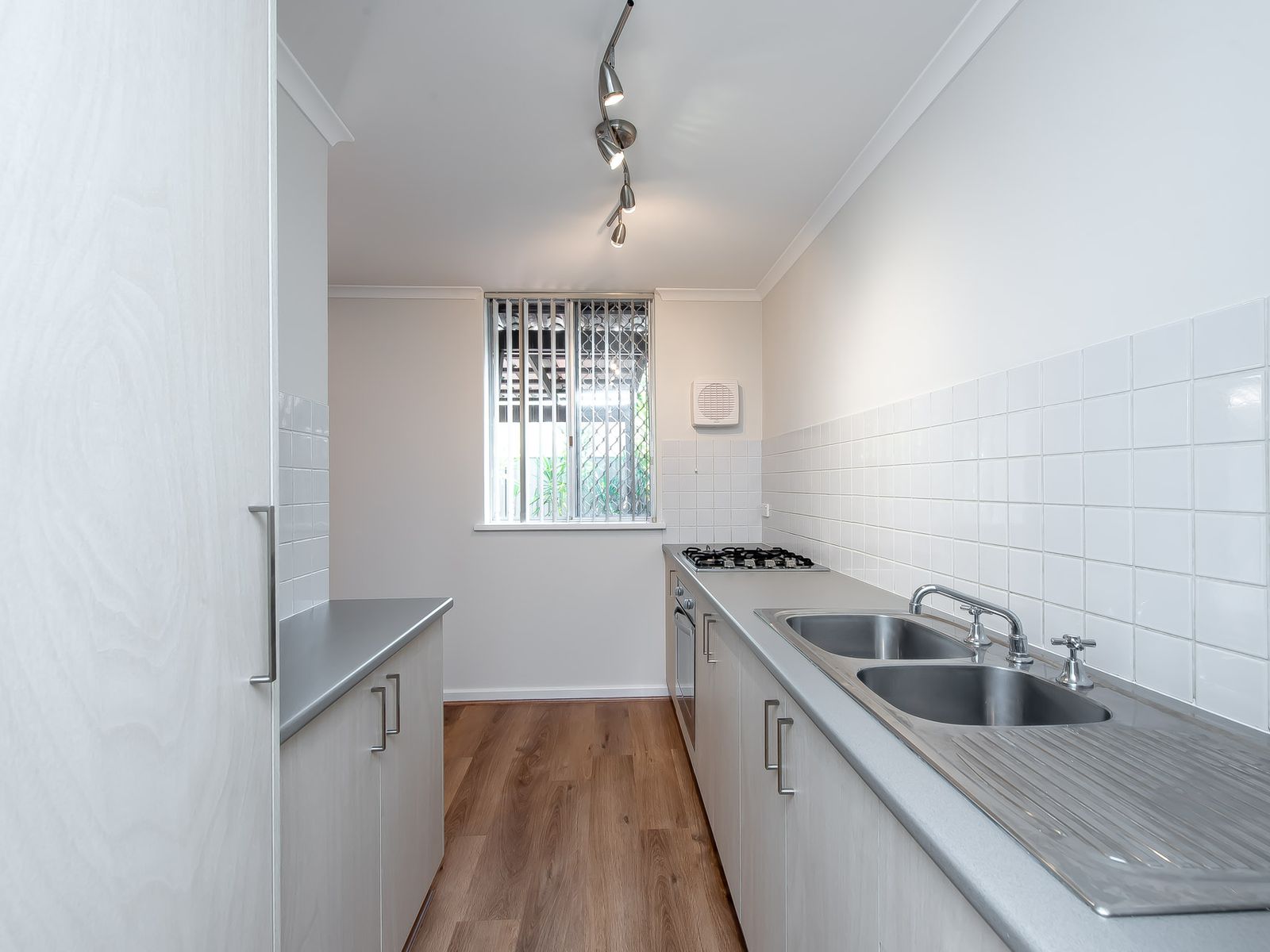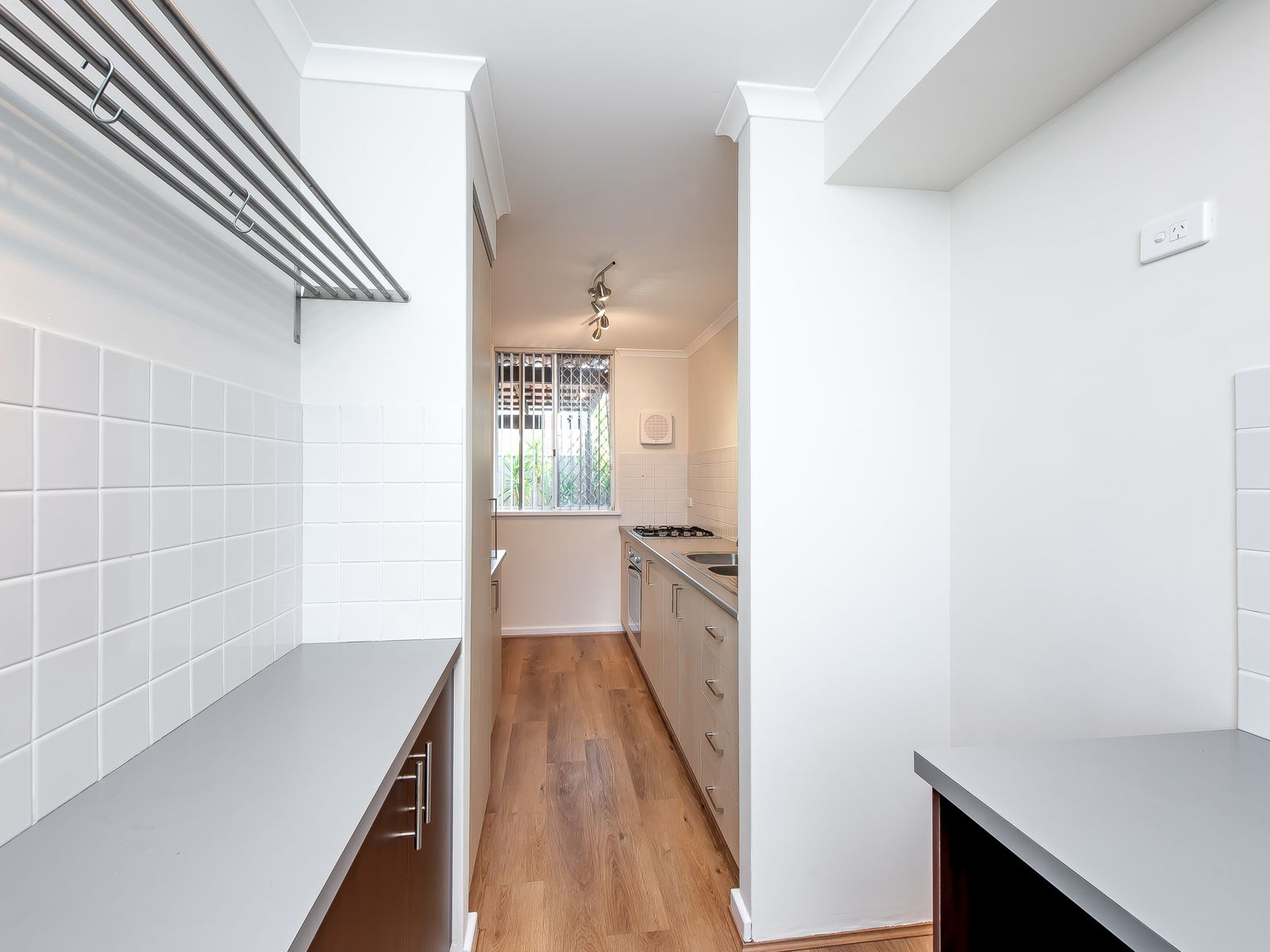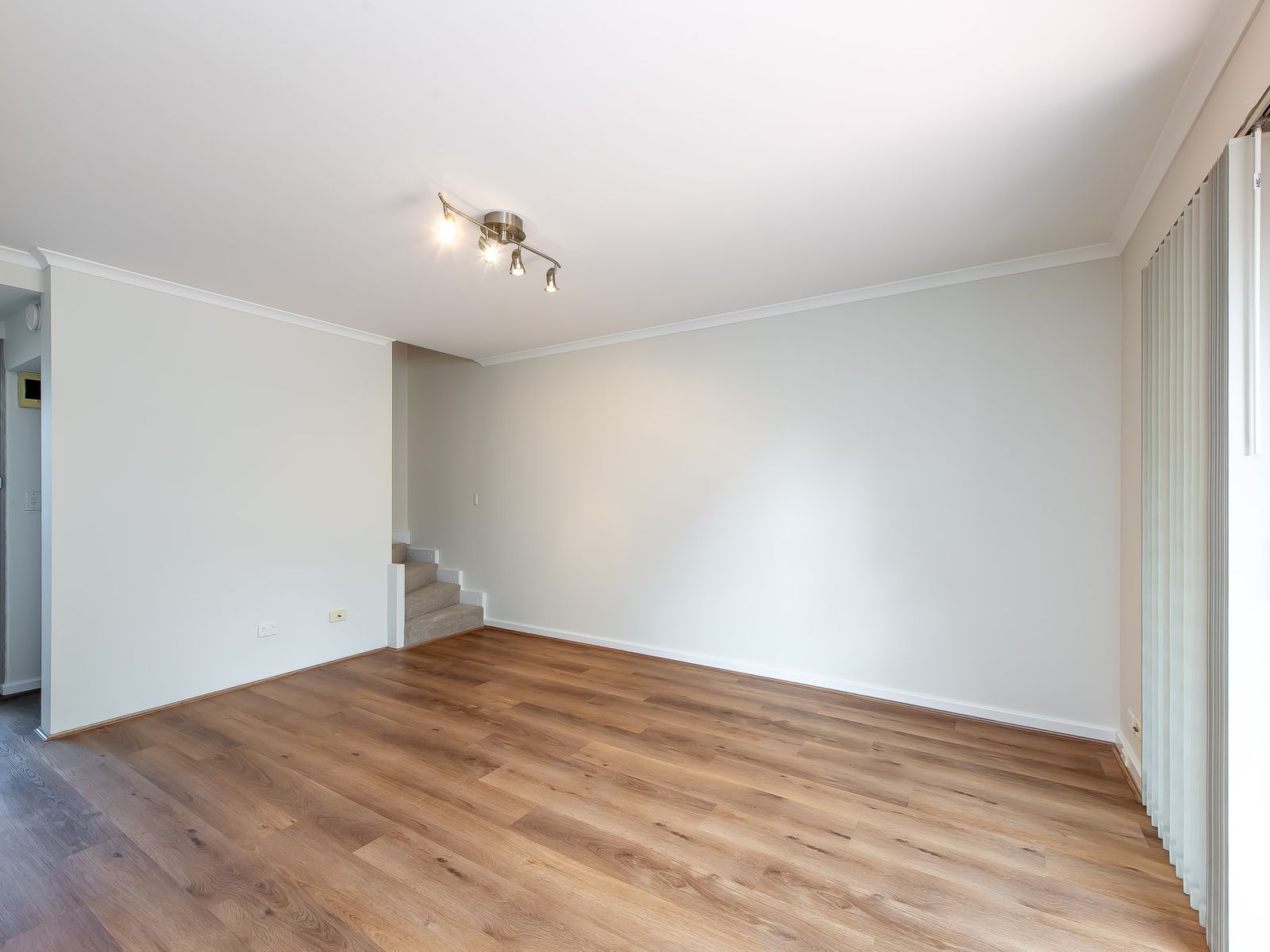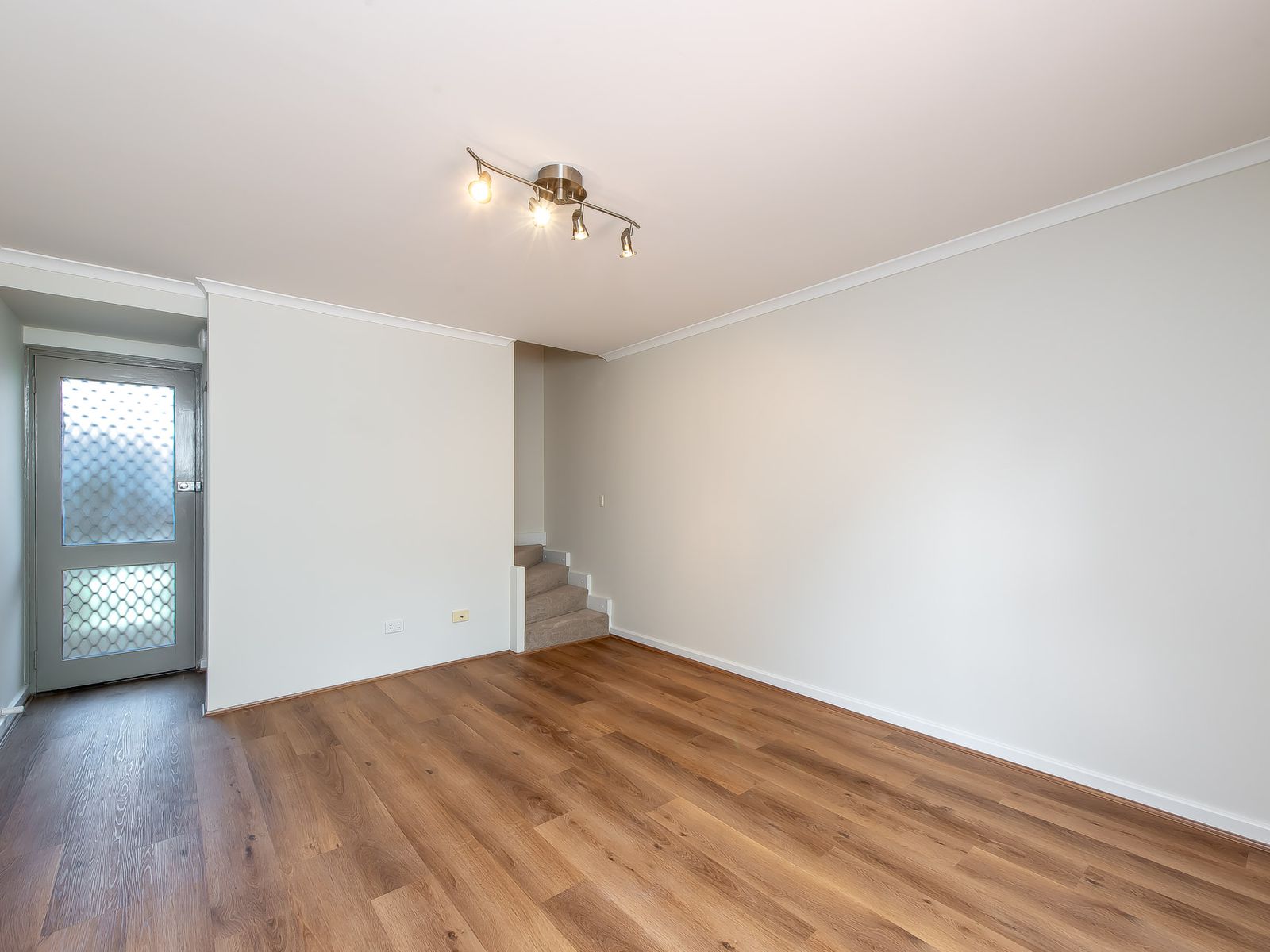 -Spacious master bedroom with built-in robe & stylish laminated flooring.