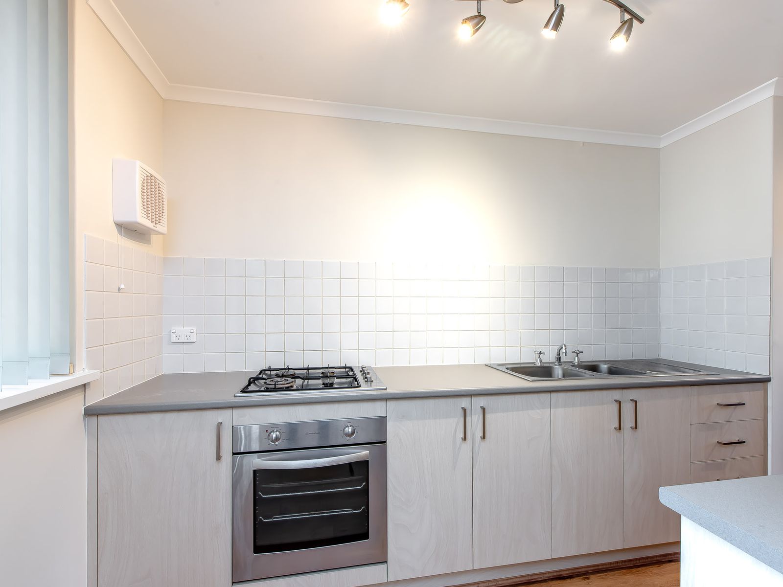 -Renovated kitchen featuring electric oven, 4 burner gas cook-top & more than ample cupboard space