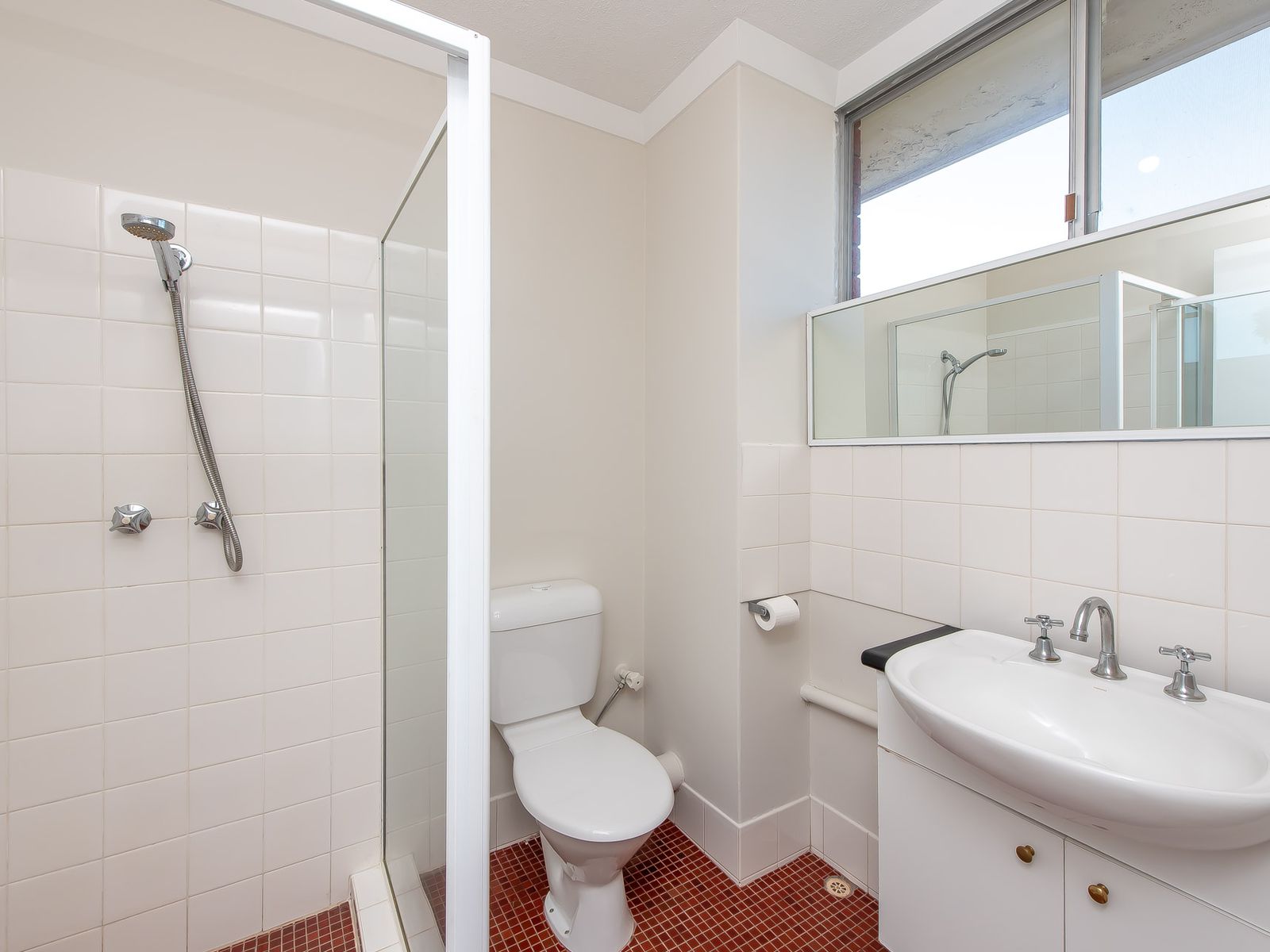 -Stylish bathroom featuring shower, basin & W/C