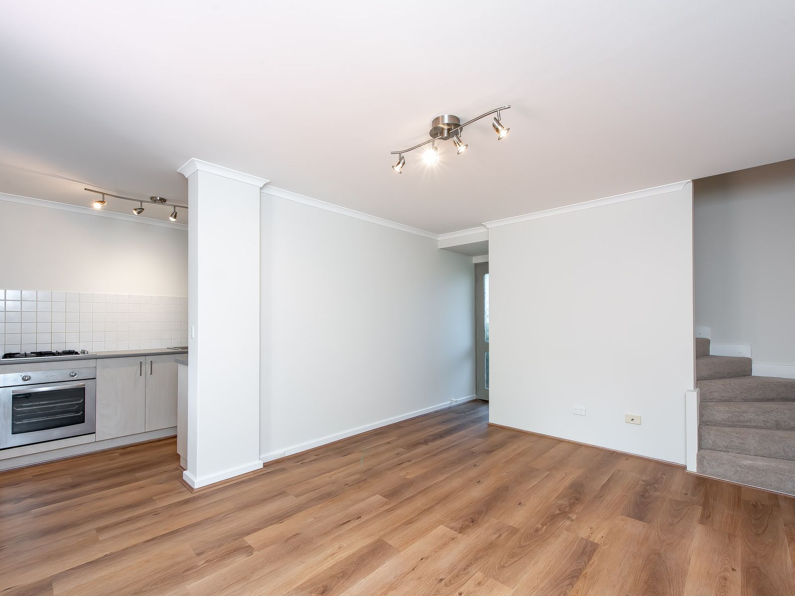 -Open plan kitchen/dining/living area featuring stylish new prefinished hybrid laminated flooring.