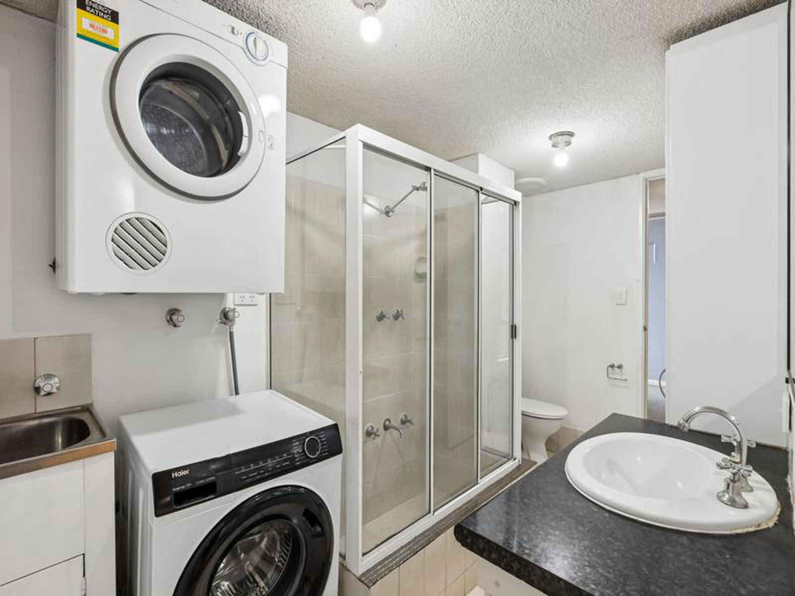 -Bathroom and laundry combined which comes equipped with washing machine and dryer